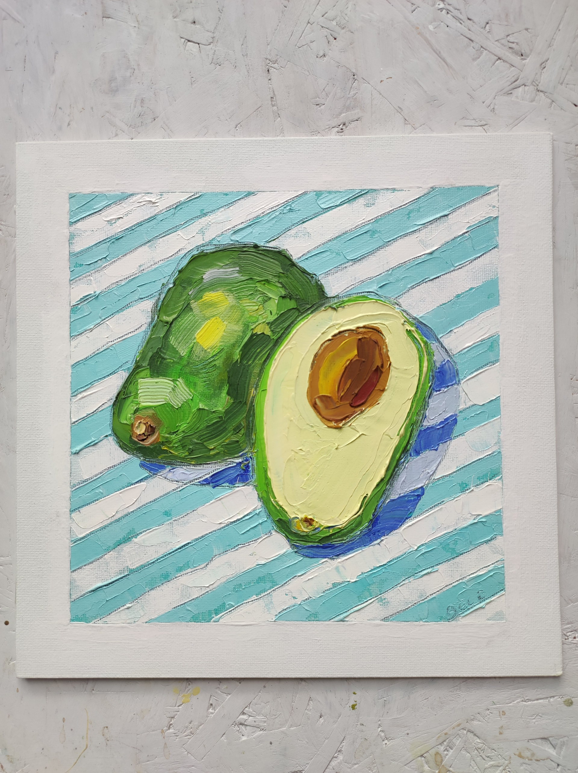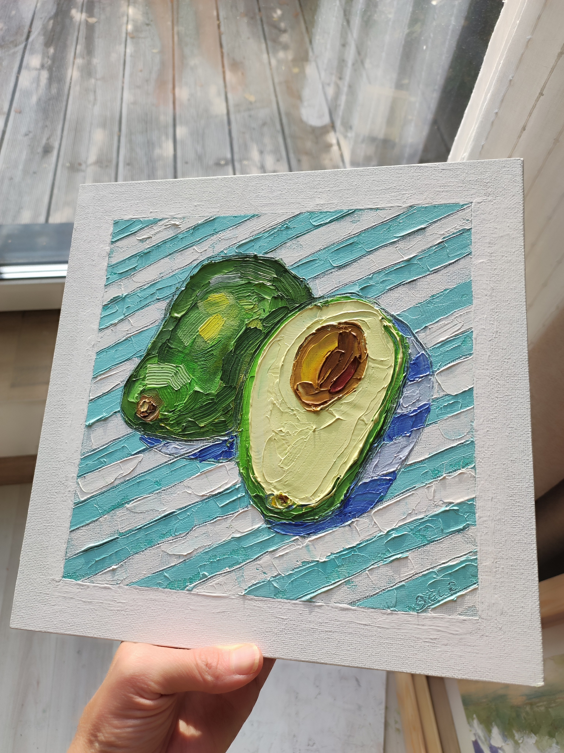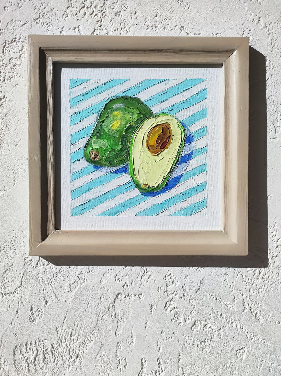 Декоративный натюрморт с авокадо, выполненный маслом, привнесёт свежесть и лёгкость в интерьер. Картина создана художницей в яркой, фактурной манере, характерной для текстурной живописи. Она отлично подойдёт тем, кто хочет купить красивую интерьерную картину для кухни, гостиной или дачи. Такой арт дополнит современную галерею живописи дома.