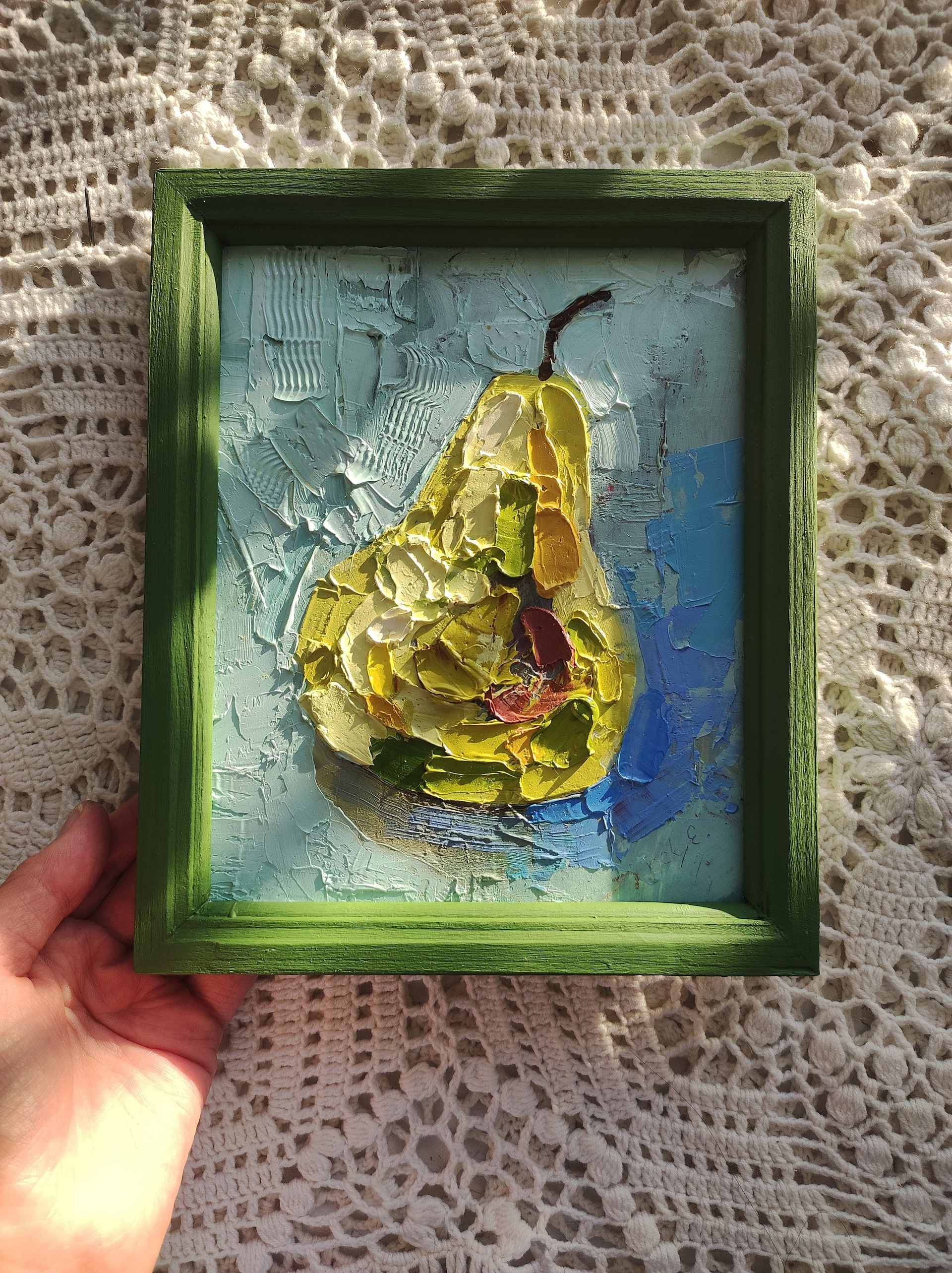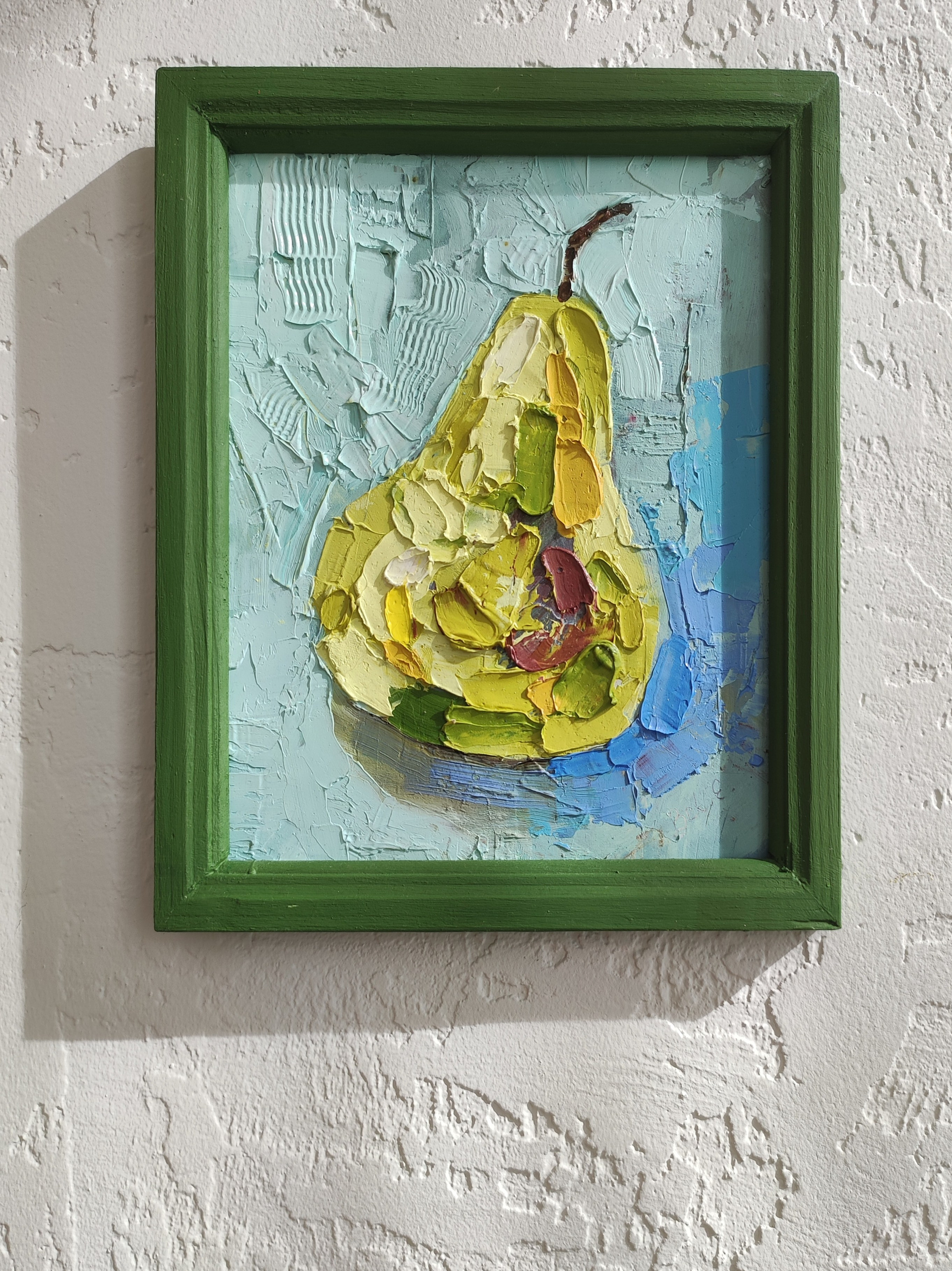 «Зеленые груши», масло, холст на картоне, 25×25 см