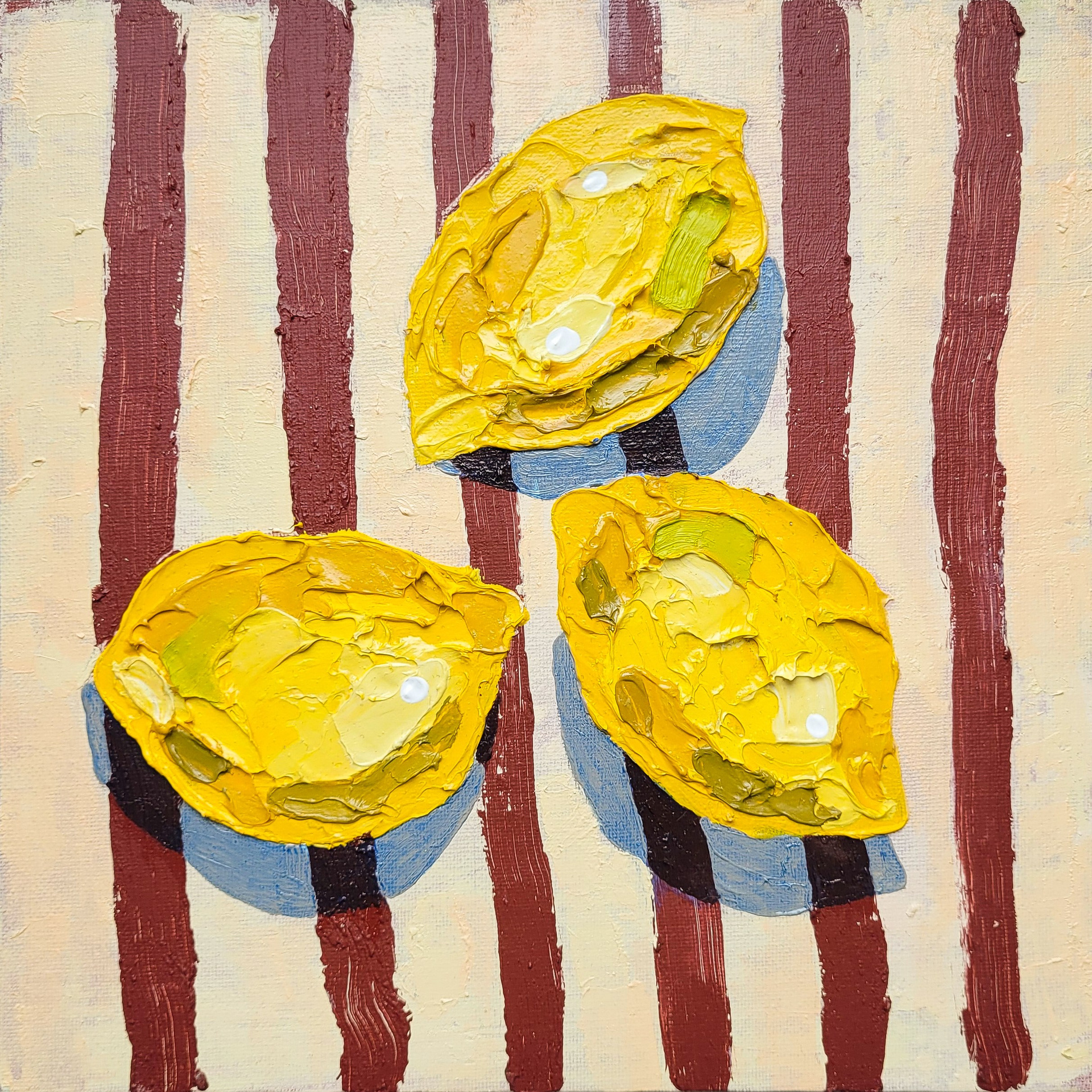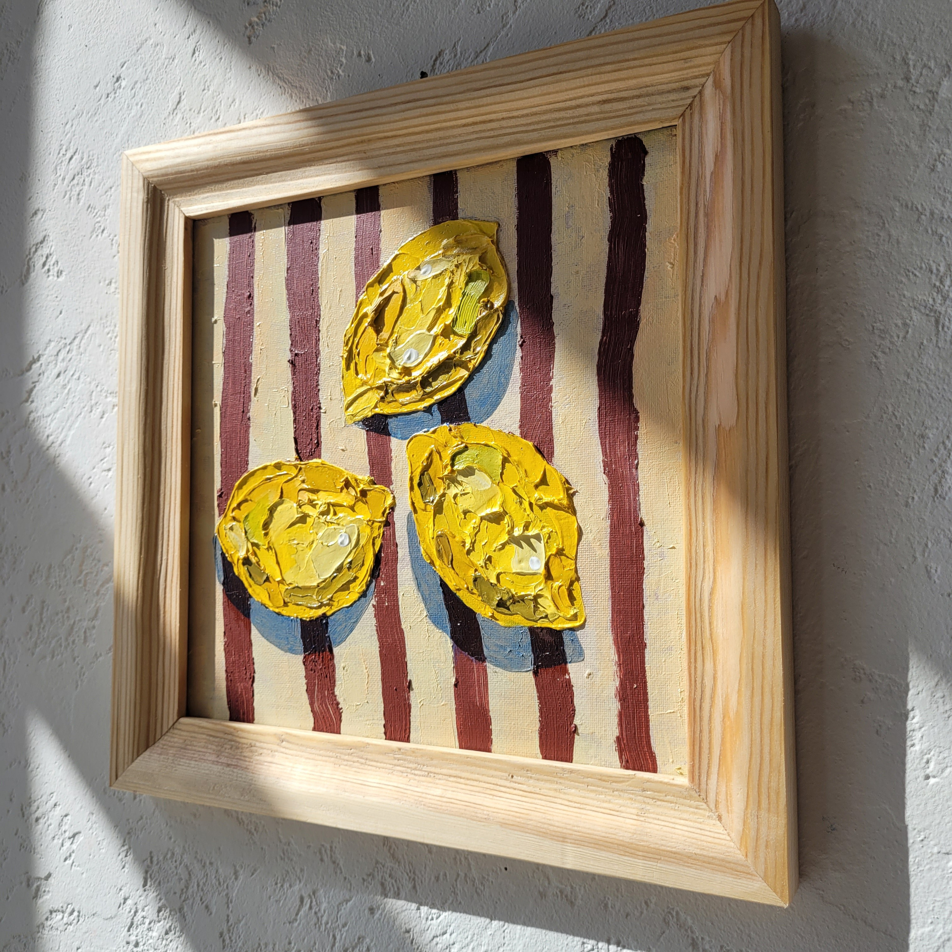 Картина. Натюрморт «Три лимончика». Акрил, масло на картоне. 25×25х см. 3500р. Стоимость без рамы, без доставки.