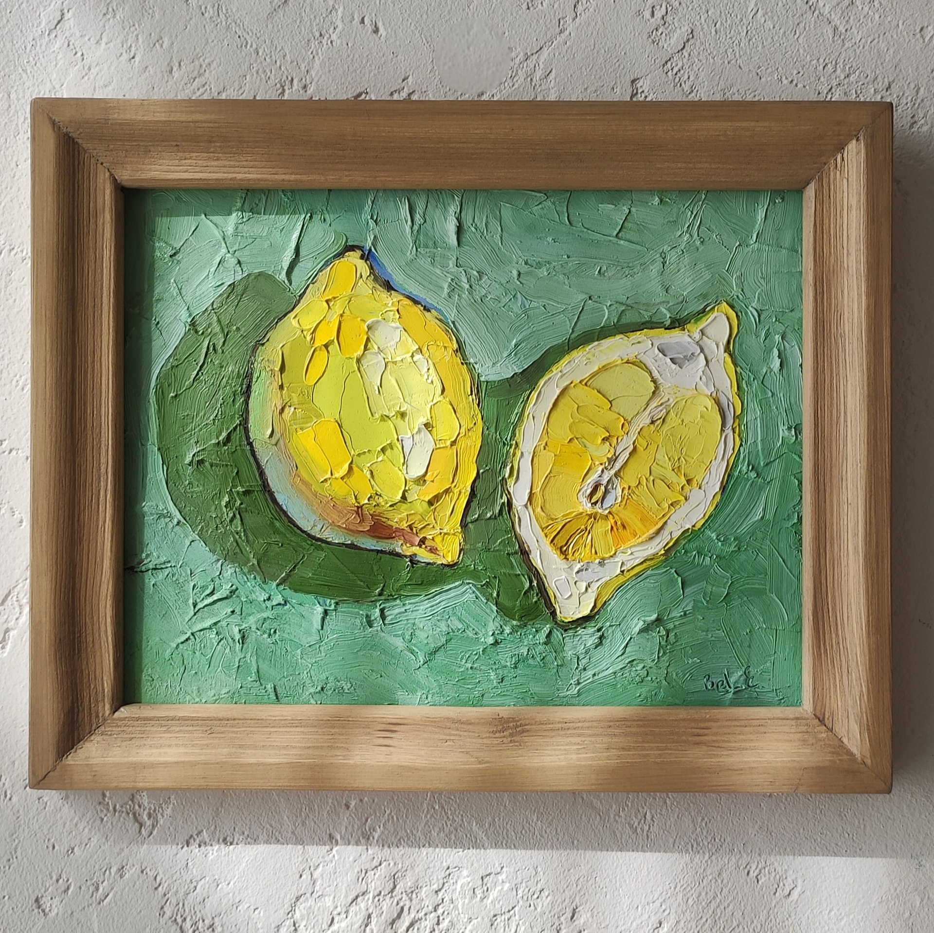 Картина маслом. «Парочка лимонов». Яркий натюрморт для кухни. Живопись для покупки.