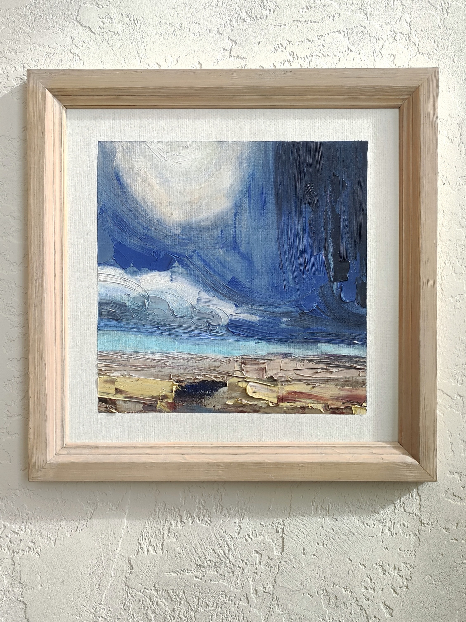 «После бури». Интерьерная абстрактная картина 40×40 см, масло, холст на картоне. Рама для примера. Оформление обсуждается.