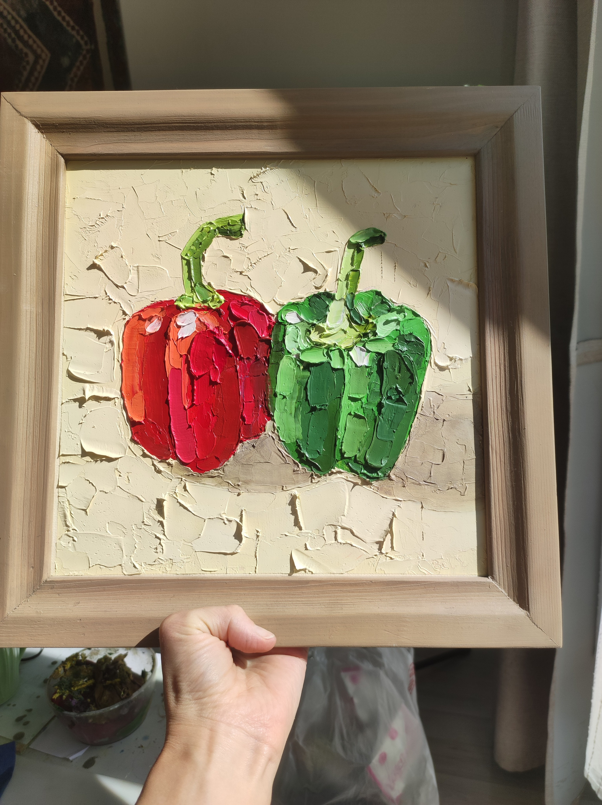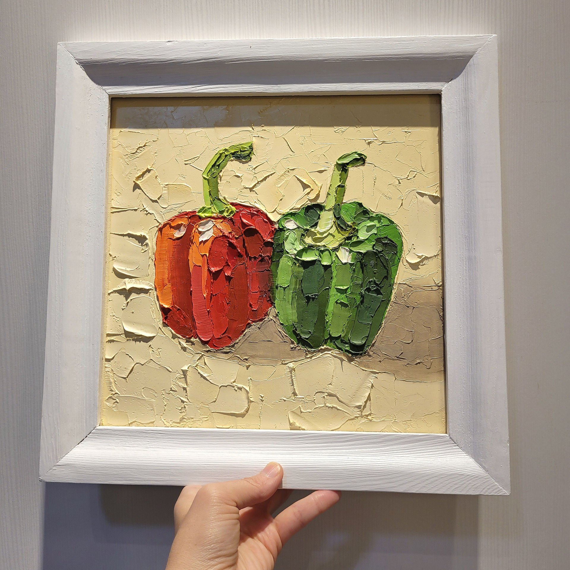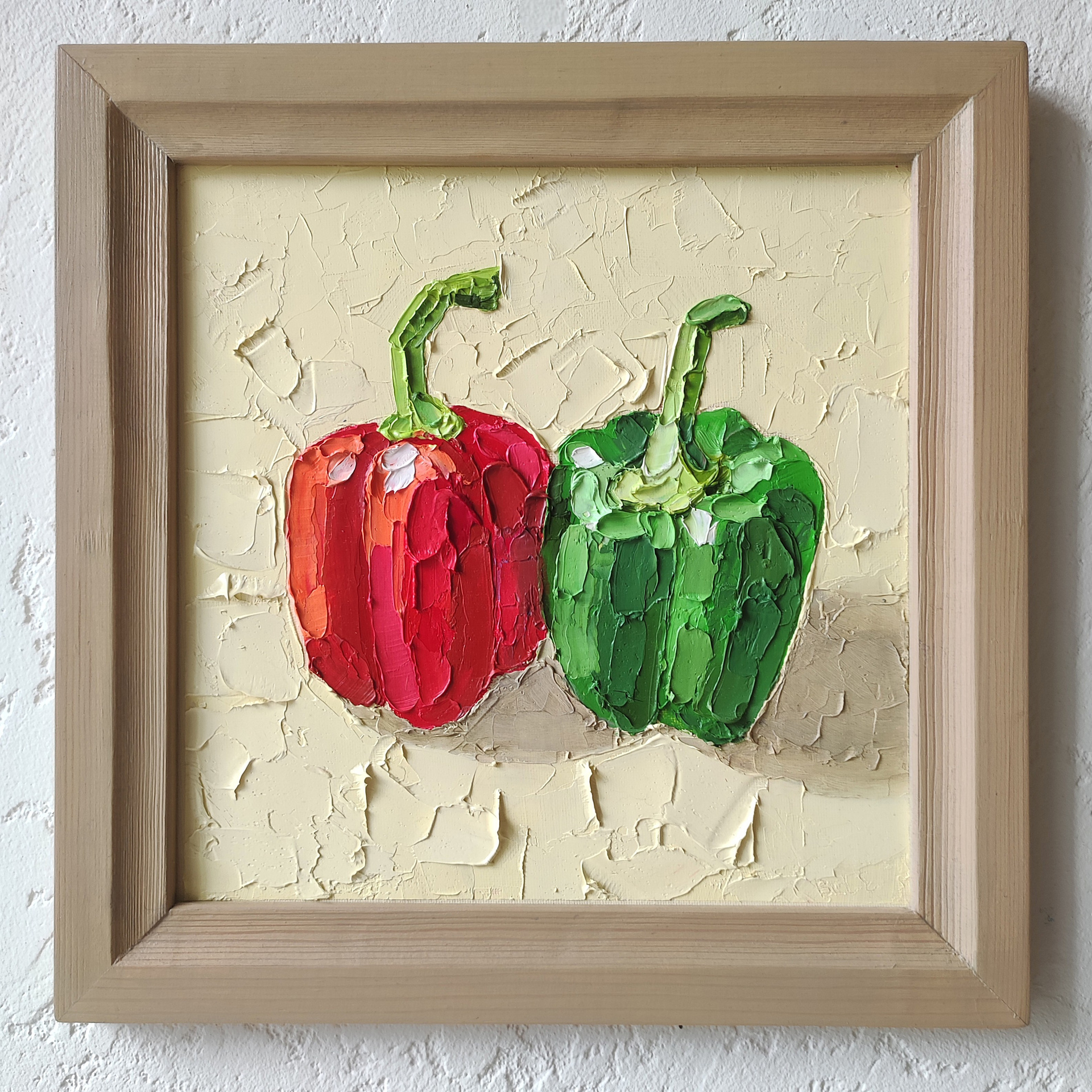 Фактурная картина маслом в технике импасто — декоративный натюрморт про тёплые отношения и близость. Яркая интерьерная живопись для кухни и дома, душевная картина художника, наполняющая пространство уютом и живым цветом.