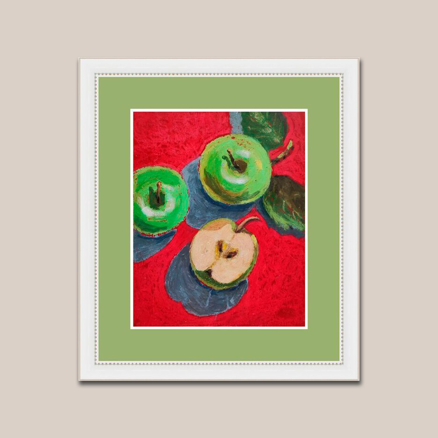 Картина с зелеными яблоками. Яркий натюрморт. Живопись для покупки.