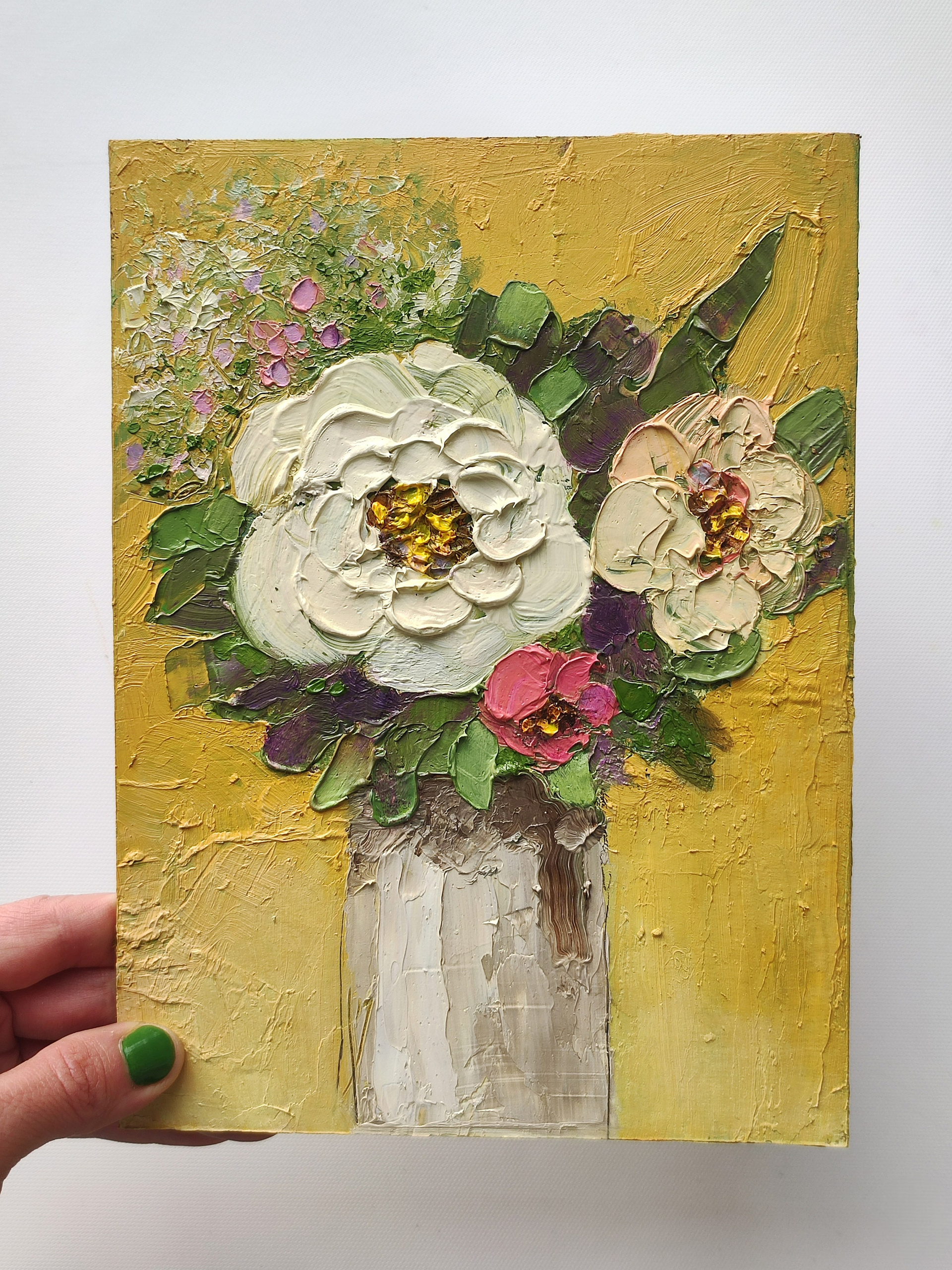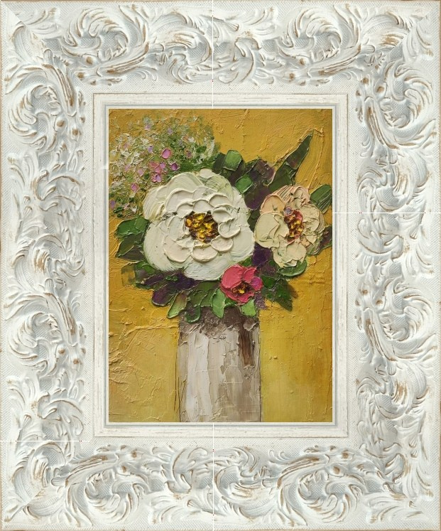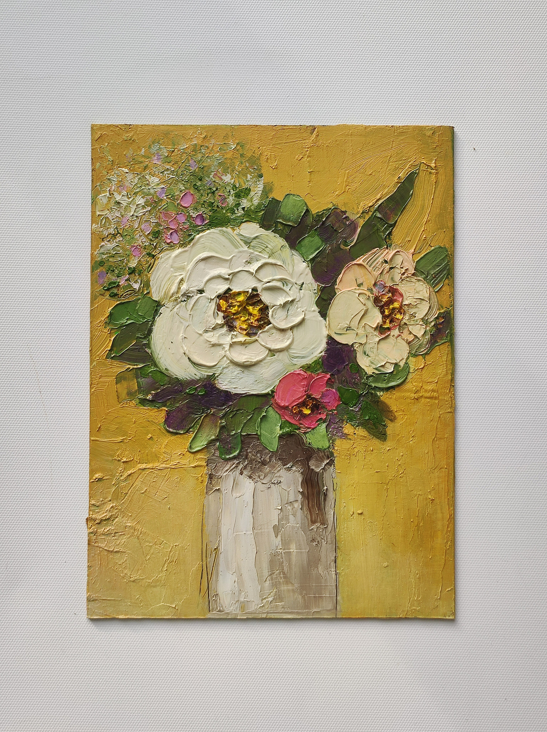 Картина маслом с цветами на желтом фоне. Живопись для покупки.